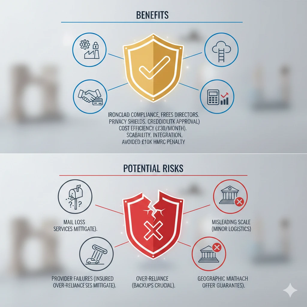 Risks include provider failures causing mail loss, though insured services mitigate via SLAs. Over-reliance without backups risks disruptions. Premium addresses might mislead on scale. Geographic mismatches for local courts pose minor logistics. Reputable operators minimise these through guarantees.