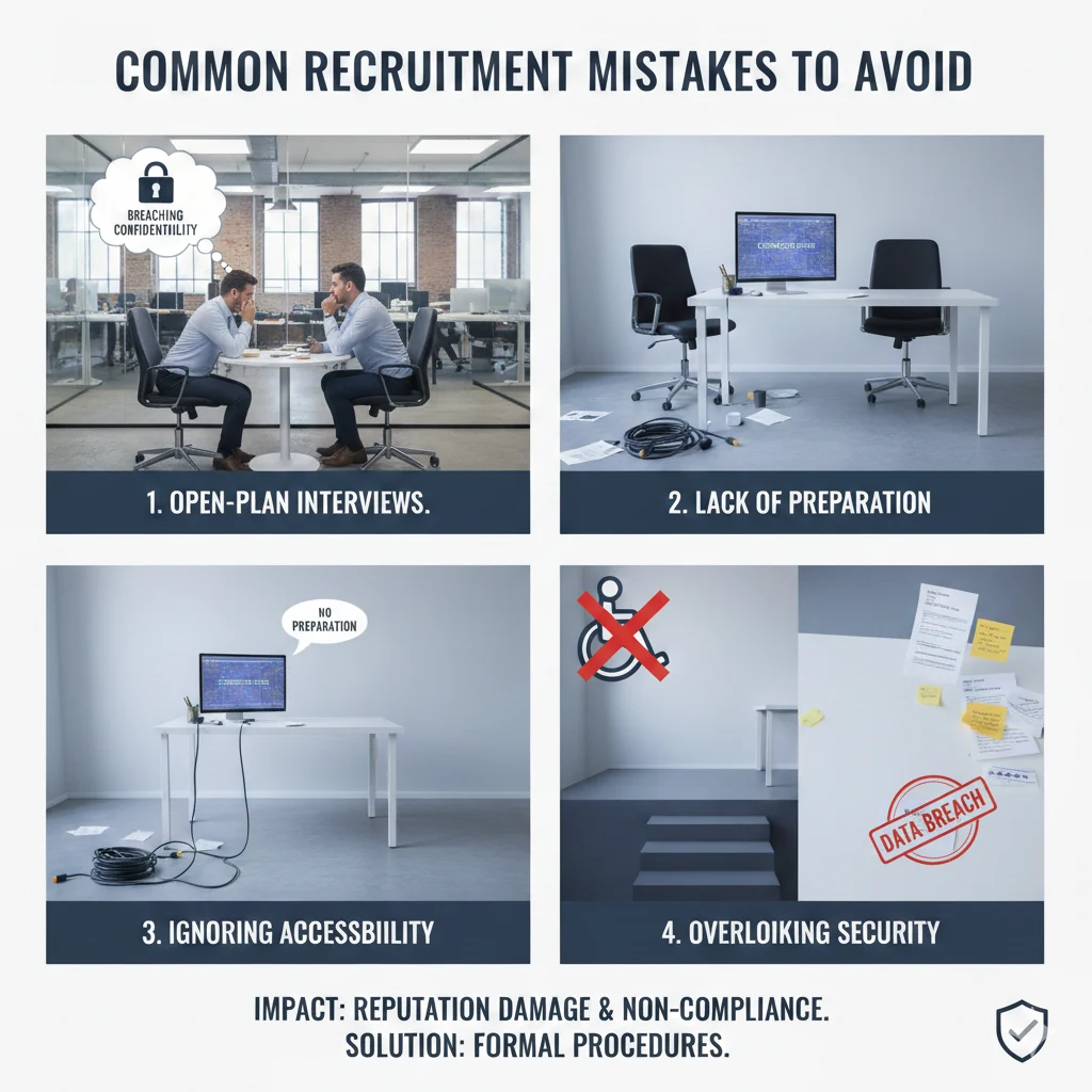 • Conducting interviews in open-plan areas: This breaches confidentiality and distracts participants.