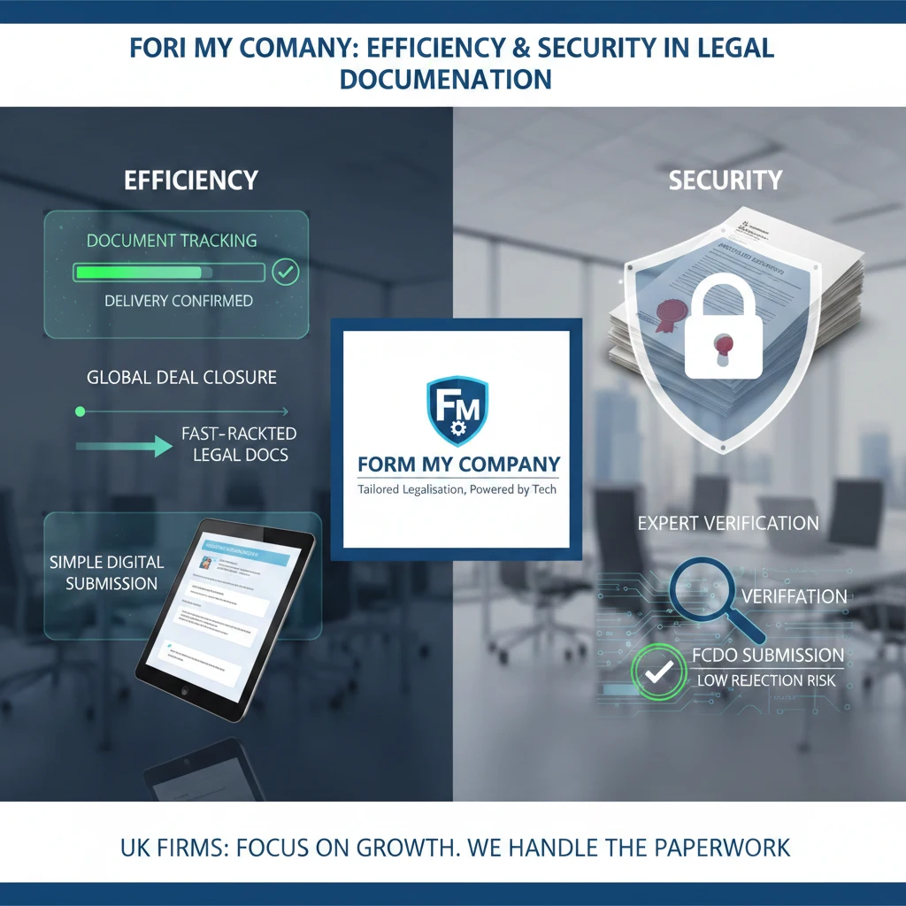 Speed is the defining factor. Traditional apostille processes through the FCDO can take up to several weeks. Fast-track solutions, like those provided by Form My Company, condense this timeline through pre-validation, courier handling, and secure document management.