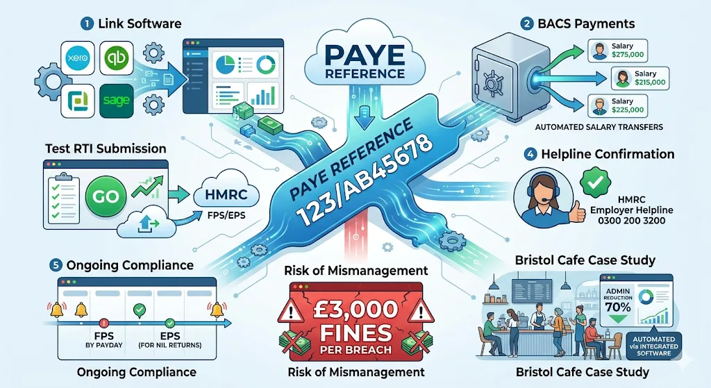 Ongoing compliance involves FPS (Full Payment Submission) by payday’s end and EPS for nil returns. A Bristol cafe chain, post-registration, automated this via integrated software, reducing admin by 70%. Your reference enables such efficiencies, but mismanagement risks £3,000 fines per breach.