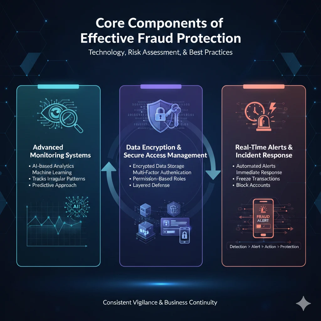 A complete Fraud Protection strategy combines technology, risk assessment, and best practices to ensure consistent vigilance. Let’s explore how these components work together.
