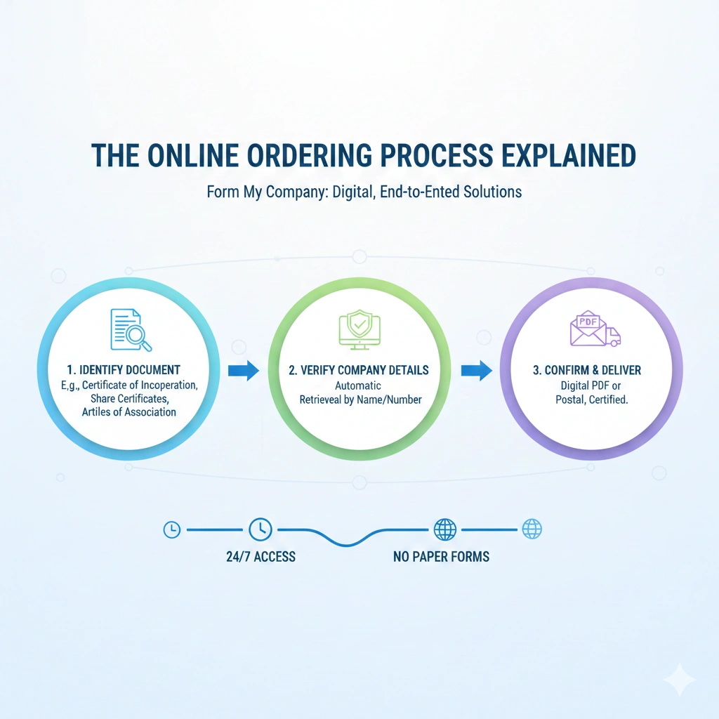 You can order Supplementary Company Documents online through services such as From My Company, which let you request certified copies of incorporation certificates, memorandums and articles of association, and change‑of‑name documents directly via a secure portal. The process typically involves confirming your company details, selecting the document types, completing identity verification, and paying online before receiving downloadable, compliant records.