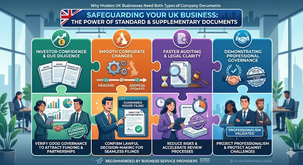 Maintaining both standard and supplementary company documents is not just a best practice it’s essential for safeguarding your company’s credibility and operational agility.