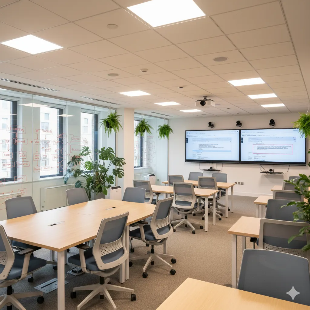 For UK entrepreneurs and business owners, investing in the right training room amenities is crucial as companies scale beyond initial formation stages, requiring structured sessions on governance, compliance and skills development. Directors and shareholders often mandate training on Companies Act duties, HMRC regulations for VAT and PAYE, or software for statutory filings, where substandard facilities undermine retention and results. Modern training rooms go beyond basic seating to incorporate tech integrations, ergonomic designs and flexible layouts that accommodate hybrid teams vital in a post-pandemic landscape where 60% of UK firms blend remote and in-person work.